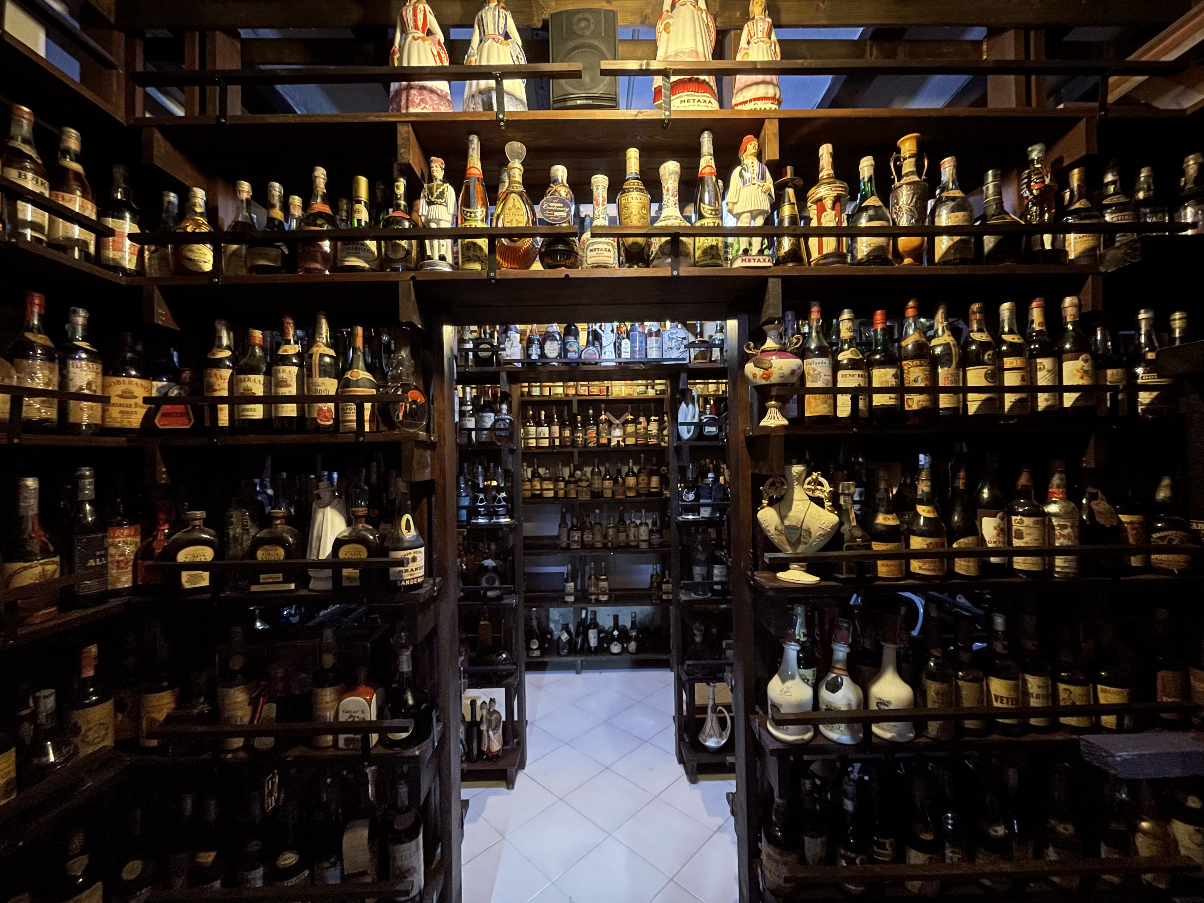 Once we wrapped up our taste test, Mirco kindly invited us into his home to taste more but on Parmigiano Reggiano. Ironic. The panic came back due to my inability to finish my big chunk of cheese that I got to taste earlier in the day, but the combo really surprised me. We sat around his kitchen table eating the oldest traditional balsamic vinegar I will ever get to try on the most natural cheese I have ever tried. After some small talk and a picture you can see below, we got up to head out. What we saw next was not originally on the itinerary, but it was just as shocking as being in a room with 33,000 wheels of cheese. Mirco, other than being a traditional balsamic connoisseur, also had one of the world’s largest whiskey collections- a collection started by his father and passed down. I walked into his basement to see hundreds of shelves packed with over 15,000 bottles of whiskey. As someone who loves and appreciates anything vintage, I was obsessed with looking at all of the different bottles. Another sight I never thought I would see, and I am so happy that I did.
